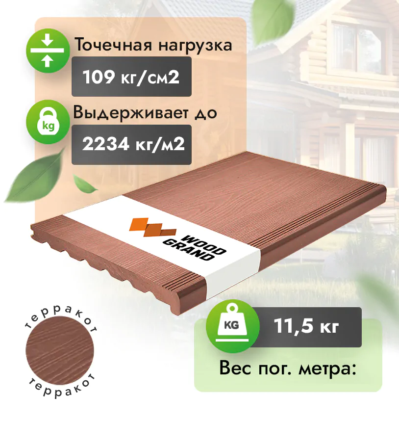 • Безупречное качество изделий, террасная ступень из ДПК соответствует ГОСТу Р 59555-2021.