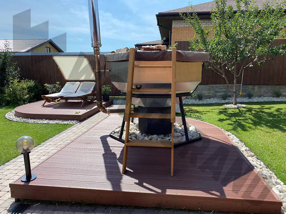 Увидела на просторах интернета рекламу с многообразием настила из ДПК доски. Обратилась в несколько компаний и остановила свой выбор на WOODGRAND. Порадовало, что производство находится относительно близко — с доставкой проблем не было. Монтаж настила из ДПК для зоны отдыха своими руками оказалось сделать очень просто. Цена доступная. Качество доски хорошее, приятная текстура, отлично подходит для хождения босиком. Получился уютный настил из ДПК для зоны отдыха во дворе.